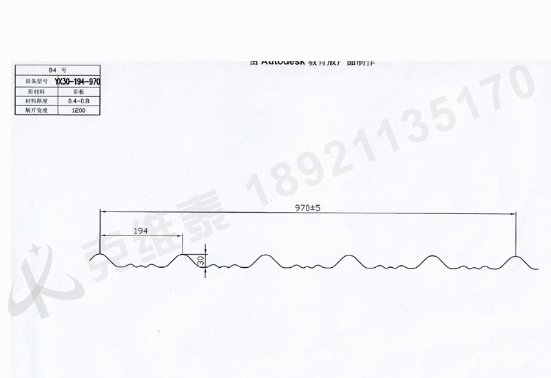 产品描述:84琉璃瓦YX30-194-970