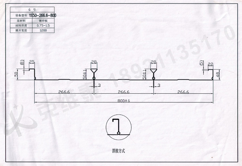 ![]() 产品名称:6闭口YX50-266.6-800