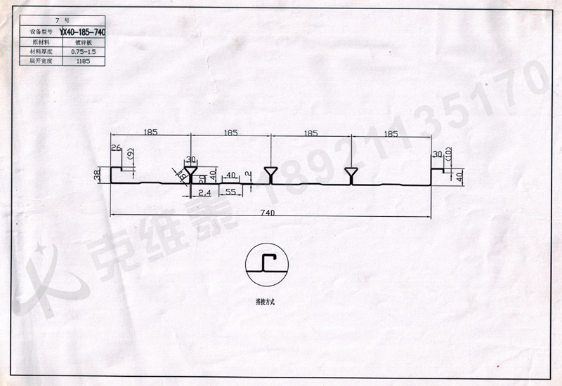 产品描述:7闭口YX40-185-740